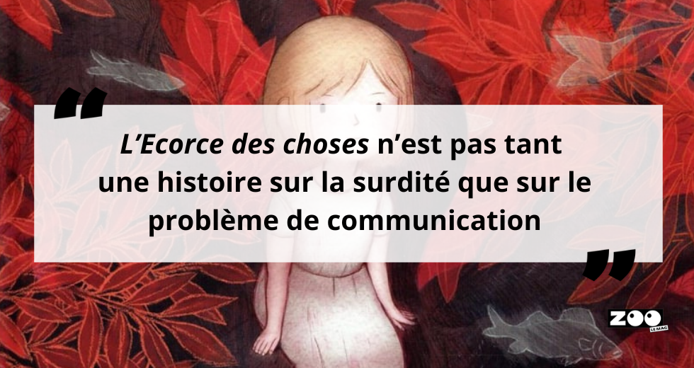 L’héroïne est certes sourde mais ce n’est pas ce qui la caractérise. L’Ecorce des choses n’est pas tant une histoire sur la surdité que sur le problème de communication. Je m’intéressais surtout au fait que la petite fille était la seule à ne pas avoir les clés pour parler, pourtant elle était la plus intéressée par la communication. Les autres peuvent parler mais ne savent plus parler, notamment ses parents. A mesure que l’histoire avance, on remarque que leur relation avec leur fille est compliquée et qu’ils ont du mal à échanger avec elle.