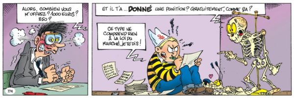 Mais s’il y a bien quelqu’un que le cancre le plus célèbre de la bande dessinée ne lasse jamais : c’est son public. Au bout de vingt-trois tomes, on pourrait croire que les bêtises de l’incorrigible Ducobu finiraient par s’essouffler. Preuve du contraire avec Profession : tricheur ! dans lequel Zidrou montre son intarissable inventivité humoristique. Bien que quelques gags dégagent une légère impression de déjà-vu, l’ancien instituteur puise encore dans son expérience pour faire à son héros le plein de pitreries et de situations inattendues.