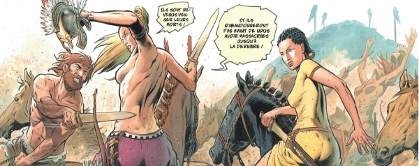 Le dessin souffre des mêmes lacunes que le scénario, l’auteur se complaît dans les grandes scènes de batailles qui s’étendent sur les pages, pour notre plus grand plaisir. Mais dès qu’il faut quitter les affrontements sanglants le dessin perd rapidement de son intérêt. Néanmoins, Reconquêtes garde en vue son objectif d’action et, à la manière des blockbusters américains, on lit sans trop de difficulté ce troisième tome.