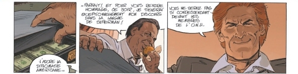 Corentin Rouge sert toujours aussi bien le scénario par ses traits fins et colorés. Ses personnages ont les traits de leurs vices, du costard étriqué des riches requins des affaires aux guenilles et bouches édentées des bêtes de la favela. La saleté et la colère s’insinuent partout, jusque dans le rictus dégouté arboré tout ce tome par Rubeus.